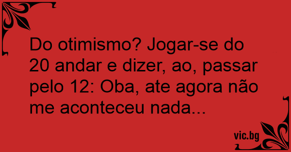 Do otimismo? Jogar-se do 20 andar e dizer, ao, passar pelo 12: Oba, ate agora não me aconteceu nada...
