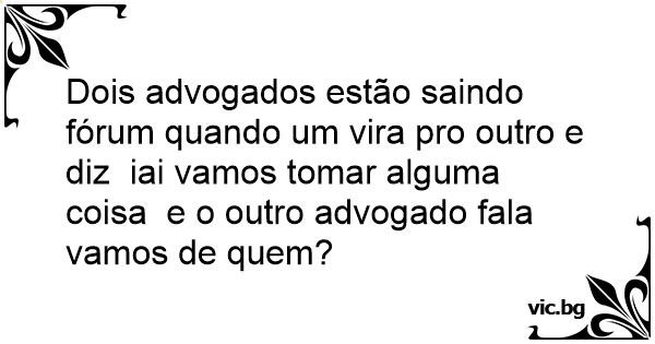 Dois advogados estão saindo fórum quando um vira pro outro e diz iai vamos tomar alguma coisa e o outro advogado fala vamos de quem?