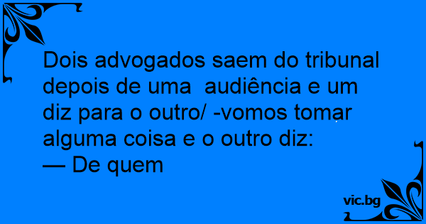 Dois advogados saem do tribunal depois de uma audiência e um diz para o outro/ -vomos tomar alguma coisa e o outro diz: