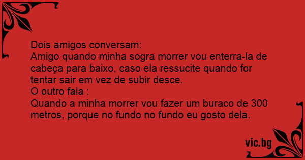 Amigo quando minha sogra morrer vou enterra-la de cabeça para baixo, caso ela ressucite quando for tentar sair em vez de subir desce.