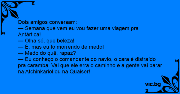 — Semana que vem eu vou fazer uma viagem pra Antártica!