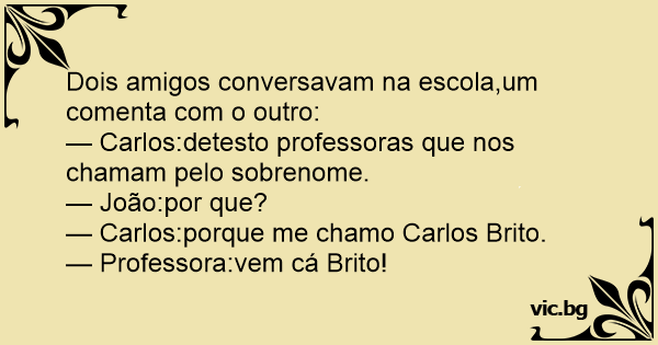 — Carlos:detesto professoras que nos chamam pelo sobrenome.