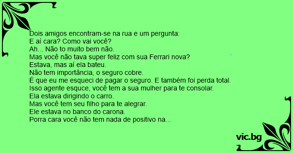 Dois amigos encontram-se na rua e um pergunta: