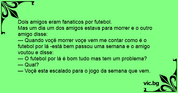 — Quando voçê morrer voçe vem me contar como é o futebol por lá -está bem passou uma semana e o amigo voutou e disse: