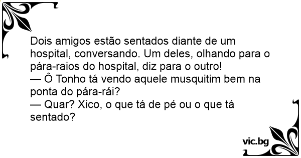 Dois amigos estão sentados diante de um hospital, conversando. Um deles, olhando para o pára-raios do hospital, diz para o outro!