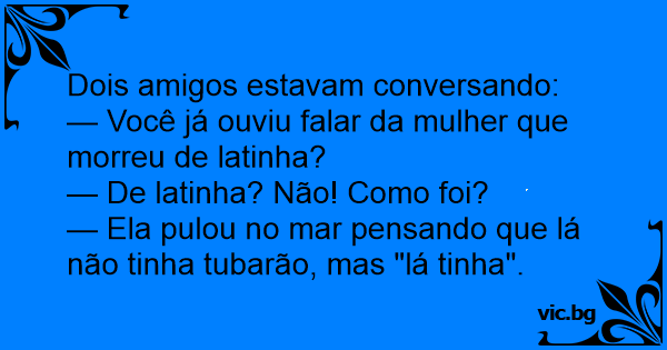 — Ela pulou no mar pensando que lá não tinha tubarão, mas "lá tinha".