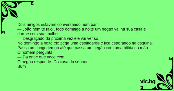 — João nem te falo , todo domingo a noite um negao vai na sua casa e dorme com sua mulher.