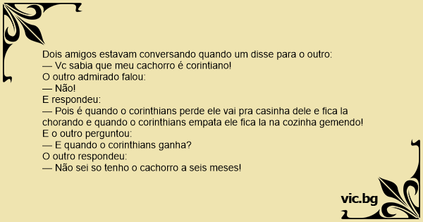— Pois é quando o corinthians perde ele vai pra casinha dele e fiса la chorando e quando o corinthians empata ele fiса la na cozinha gemendo!