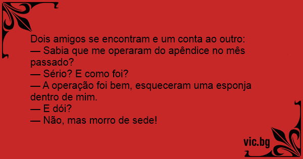 — A operação foi bem, esqueceram uma esponja dentro de mim.