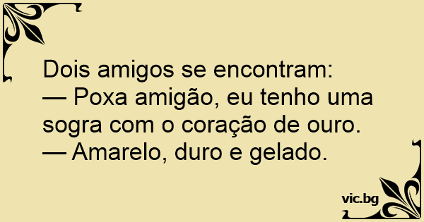 — Poxa amigão, eu tenho uma sogra com o coração de ouro.