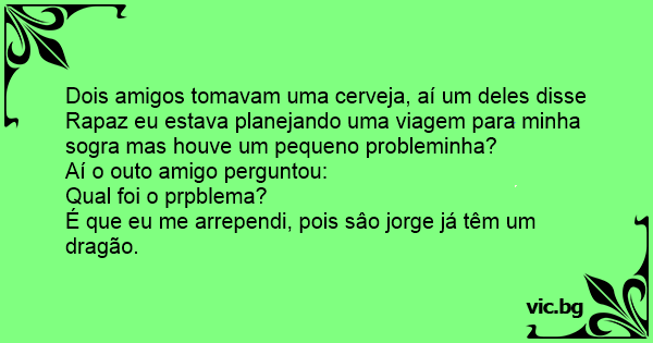 Dois amigos tomavam uma cerveja, aí um deles disse Rapaz eu estava planejando uma viagem para minha sogra mas houve um pequeno probleminha?