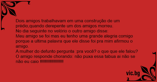O amigo responde chorando: não puxa essa tabua ai não se não eu caio !!!!!!!!!!!!!!!!!!!