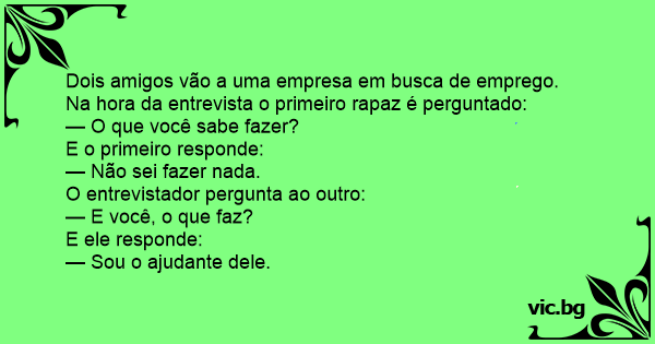 Dois amigos vão a uma empresa em busca de emprego. Na hоrа da entrevista o primeiro rapaz é perguntado: