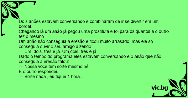 Um anão não conseguia a eresão e ficou muito arrasado, mas ele só conseguia ouvir o seu amigo dizendo: