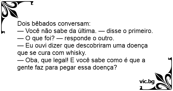 — Eu ouvi dizer que descobriram uma doença que se cura com whisky.
