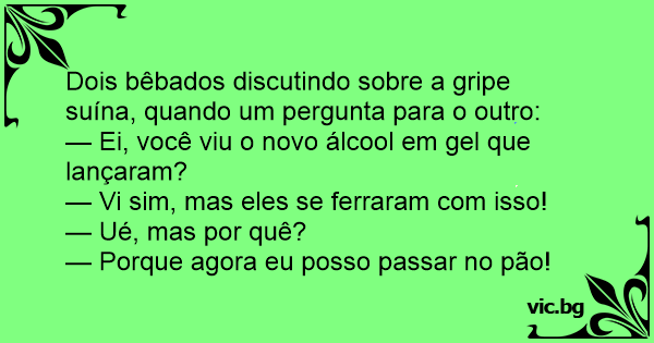 Dois bêbados discutindo sobre a gripe suína, quando um pergunta para o outro: