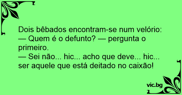 — Sei não... hic... acho que deve... hic... ser aquele que está deitado no caixão!