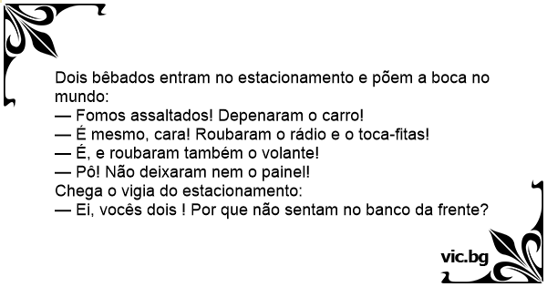 Dois bêbados entram no estacionamento e põem a boca no mundo: