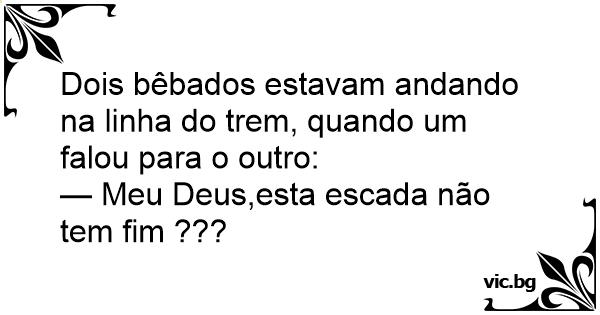 Dois bêbados estavam andando na linha do trem, quando um falou para o outro: