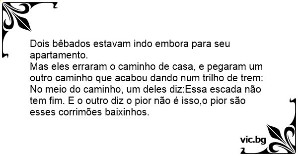 No meio do caminho, um deles diz:Essa escada não tem fim. E o outro diz o pior não é isso,o pior são esses corrimões baixinhos.