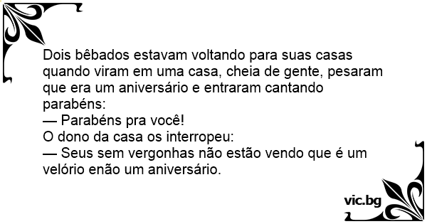 Dois bêbados estavam voltando para suas casas quando viram em uma casa, cheia de gente, pesaram que era um aniversário e entraram cantando parabéns: