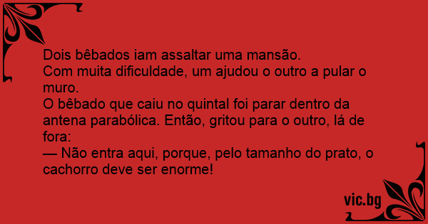 O bêbado que caiu no quintal foi parar dentro da antena parabólica. Então, gritou para o outro, lá de fora: