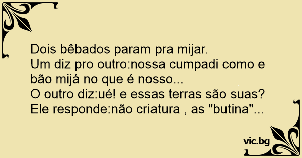 Um diz pro outro:nossa cumpadi como e bão mijá no que é nosso...