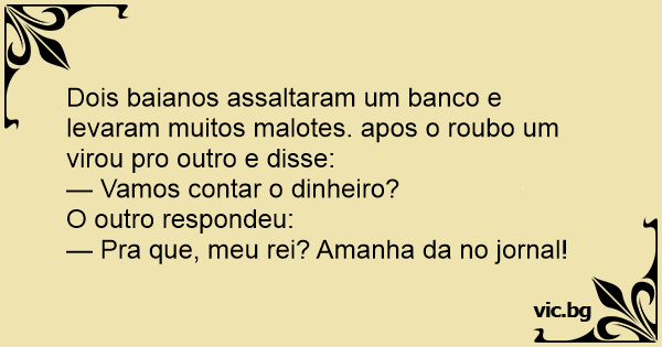 Dois baianos assaltaram um banco e levaram muitos malotes. apos o roubo um virou pro outro e disse:
