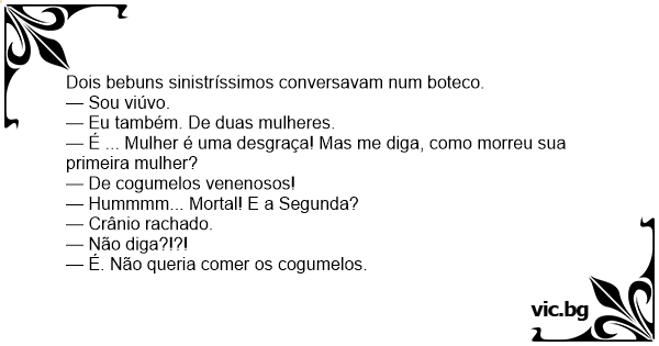 — É ... Mulher é uma desgraça! Mas me diga, como morreu sua primeira mulher?