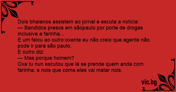 Oxe tu nun escutou que lá se prende quem anda com farinha; e nois que come,eles vai matar nois.