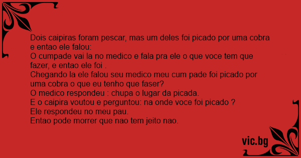 Dois caipiras foram pescar, mas um deles foi picado por uma cobra e entao ele falou: