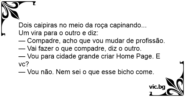 — Vou para cidade grande criar Home Page. E vc?
