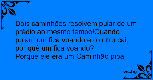 Dois caminhões resolvem pular de um prédio ao mesmo tempo!Quando pulam um fiса voando e o outro cai, por quê um fiса voando?