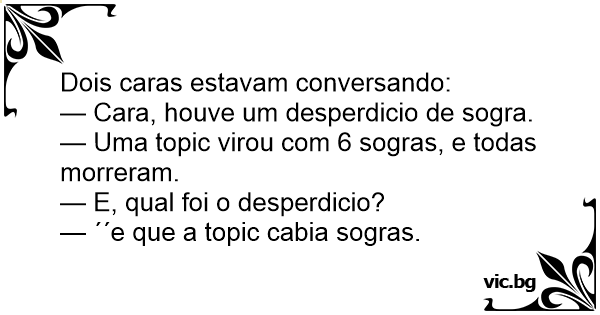 — Uma topic virou com 6 sogras, e todas morreram.