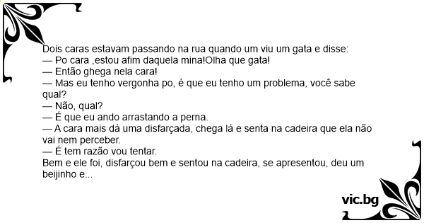 Dois caras estavam passando na rua quando um viu um gata e disse: