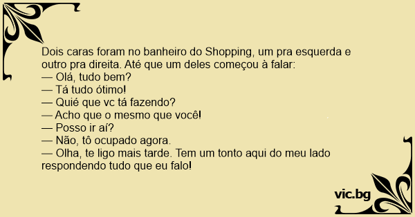 Dois caras foram no banheiro do Shopping, um pra esquerda e outro pra direita. Até que um deles começou à falar: