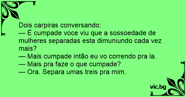 — É cumpade voce viu que a sossoedade de mulheres separadas esta dimuniundo cada vez mais?