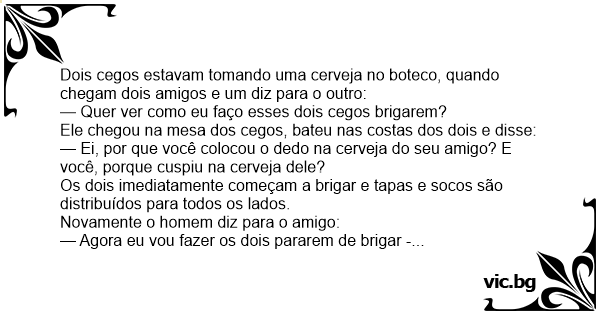 Ele chegou na mesa dos cegos, bateu nas costas dos dois e disse: