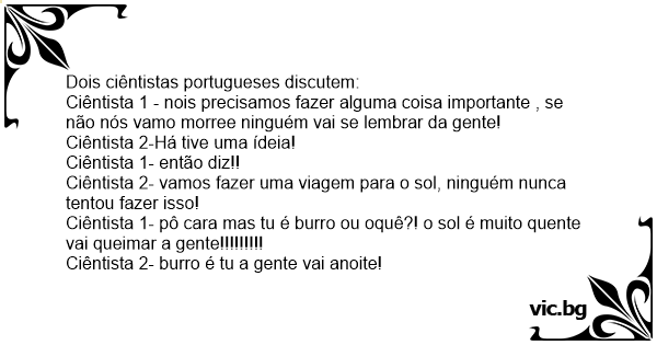 Ciêntista 1- pô cara mas tu é вurrо ou oquê?! o sol é muito quente vai queimar a gente!!!!!!!!!