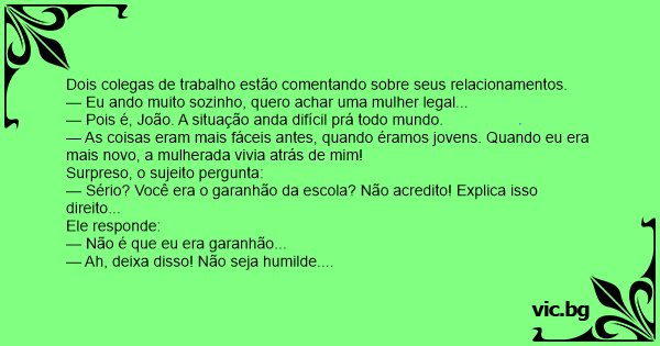 — Ah, deixa disso! Não seja humilde.