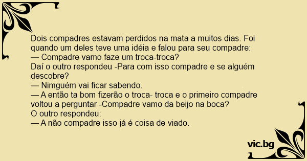 Daí o outro respondeu -Para com isso compadre e se alguém descobre?