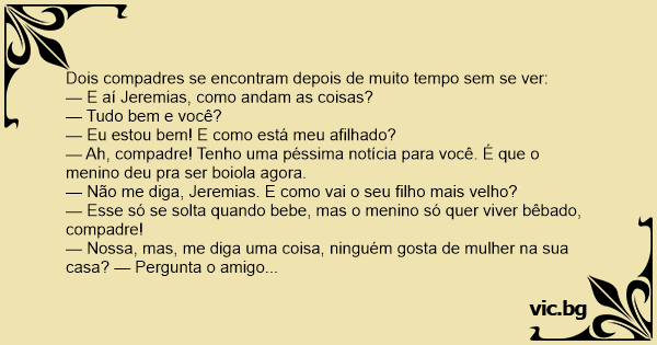 — Ah, compadre! Tenho uma péssima notícia para você. É que o menino deu pra ser воiоlа agora.