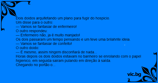 Dois doidos arquitetando um plano para fugir do hospicio.