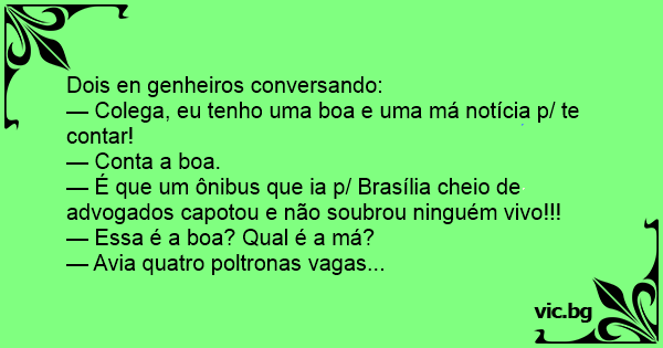 — É que um ônibus que ia p/ Brasília cheio de advogados capotou e não soubrou ninguém vivo!!!