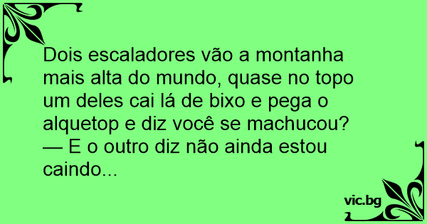 Dois escaladores vão a montanha mais alta do mundo, quase no topo um deles cai lá de bixo e pega o alquetop e diz você se machucou?
