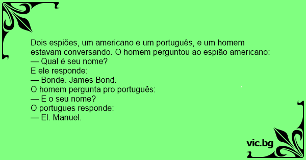 Dois espiões, um americano e um português, e um homem estavam conversando. O homem perguntou ao espião americano: