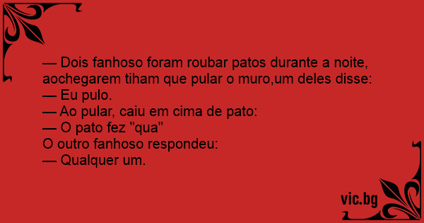 — Dois fanhoso foram roubar patos durante a noite, aochegarem tiham que pular o muro,um deles disse: