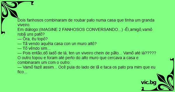 Em diálogo:(IMAGINE 2 FANHOSOS CONVERSANDO...) -Êi,amigô,vamô robã uns patõ?