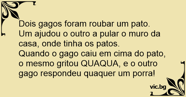 Quando o gago caiu em cima do pato, o mesmo gritou QUAQUA, e o outro gago respondeu quaquer um роrrа!