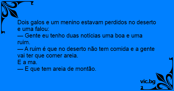 Dois galos e um menino estavam perdidos no deserto e uma falou:
